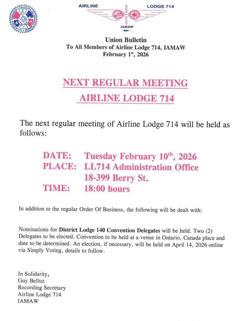 ALL IAM MEMBERS AIR CANADA 2026 CONTRACT BARGAINING UPDATE
